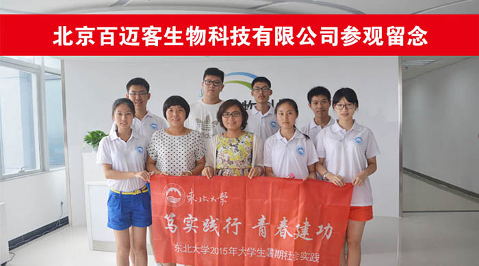 2015年8月7日下午13:30時(shí),東北大學(xué)生物工程專業(yè)的7名大學(xué)生來到百邁客,進(jìn)行參觀交流。此次暑期參觀活動為東北大學(xué)校方支持的學(xué)生假期實(shí)踐活動之一。