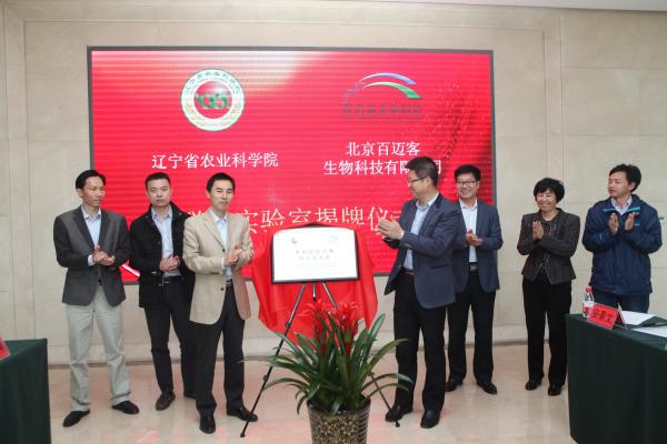 暮春時(shí)節(jié),盛京勝 景。2016年4月28日,百邁客-遼寧省農(nóng)科院聯(lián)合實(shí)驗(yàn)室揭牌儀式在農(nóng)科院展廳隆重舉行。農(nóng)科院隋國民院長和百邁客鄭洪坤總裁為聯(lián)合實(shí)驗(yàn)室揭牌。農(nóng)科院 科技處安景文處長,創(chuàng)新中心鄒健秋主任,陸曉春副主任以及百邁客云科技有限公司張?jiān)鼋鹂偨?jīng)理,BD部張軍經(jīng)理參加揭牌儀式。
