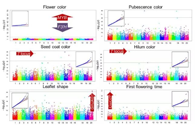 Fig2:重要農(nóng)藝性狀的群基因組關聯(lián)分析圖