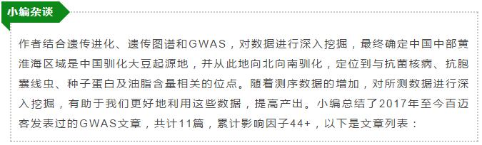 大豆作為重要的農(nóng)作物,在我國有著6000-9000年的馴化史,其馴化方向主要與產(chǎn)量、品質(zhì)和抗病等性狀相關。東北農(nóng)業(yè)大學的李文濱教授及其團隊和北京百邁客生物科技有限公司合作,在大豆起源、抗菌核病、抗胞囊線蟲、種子蛋白及油脂含量方面取得重要進展,其研究成果相繼發(fā)表在New Phytologist、The Plant Journal、BMC Genomics和Genomics,累計影響因子23+。下面我們就看看作者是如何對數(shù)據(jù)進行深入挖掘,做到低投入、高產(chǎn)出的。