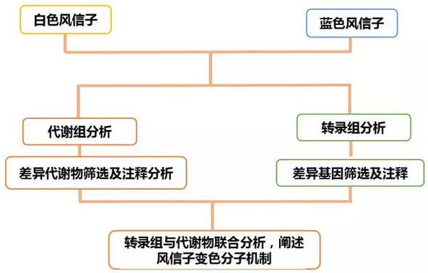 1.本篇文章結(jié)合已發(fā)表的文章,采用靶向代謝組的技術(shù),分析白色和藍(lán)色風(fēng)信子中與花青素合成相關(guān)差異代謝物,同時通過轉(zhuǎn)錄組解析花色素合成相關(guān)差異基因變化,最后轉(zhuǎn)錄組和代謝組揭示了白色風(fēng)信子褪色分子機制。