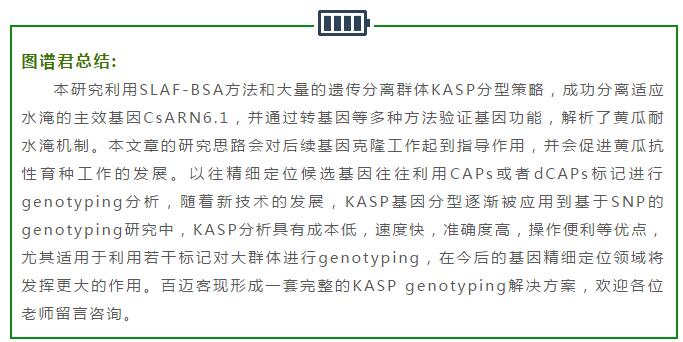 Bulked Segregant Analysis(BSA)分析是利用極端性狀個體混池快速進行功能基因挖掘的常用方法,廣泛應用在植物基因克隆方面。SLAF-seq是百邁客自主研發(fā)的簡化基因組測序技術(shù),通過對基因組特定的酶切片段進行高通量測序,在降低基因組復雜度的基礎上,又獲得大量的基因組變異信息,在群體遺傳研究中發(fā)揮著重要作用。將SLAF-seq和BSA分析完美結(jié)合(SLAF-BSA)進行功能基因定位,是一種快速、準確、性價比極高的分析策略。日前,由百邁客和揚州大學陳學好教授課題組合作,利用SLAF-BSA策略定位黃瓜耐淹基因,相關(guān)研究成果發(fā)表于新一期的Plant Journal雜志。本期圖譜君將對這一成果解讀,同時文末繼續(xù)有基于遺傳群體進行基因定位的國自然標書,期待能給大家3月份的國自然基金申請帶來一些靈感。