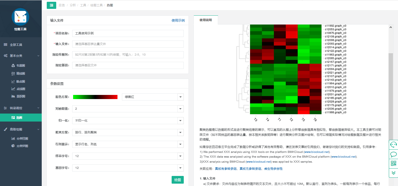 是由北京百邁客生物科技有限公司開發(fā),集生物信息分析軟件、數(shù)據(jù)庫以及云計算為一體的生物大數(shù)據(jù)分析平臺。功能強大,操作簡單的聚類熱圖就介紹到這里了,后期云平臺會為大家準備更多實用小工具的操作指引,如果您在操作過程中遇到任何問題都可以聯(lián)系咱們的云客服,歡迎點擊屏幕右下方客服圖像進入咨詢環(huán)節(jié)。