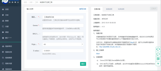 在對(duì)話框中輸入“轉(zhuǎn)錄因子注釋”,Enter鍵進(jìn)入轉(zhuǎn)錄因子注釋工具界面