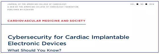 Cybersecurity for Cardiac Implantable Electronic Devices: What Should You Know?[J]. Journal of the American College of Cardiology, 2018.(IF=19.896)