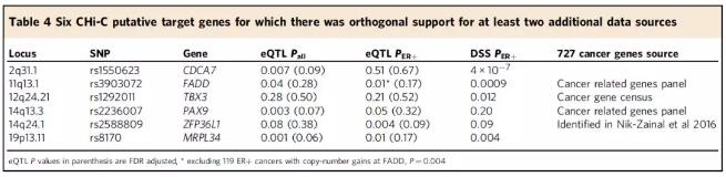 捕獲Hi-C測序鑒定33個(gè)乳腺癌風(fēng)險(xiǎn)基因座潛在的110個(gè)靶基因