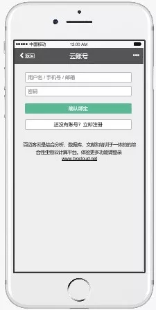 2.點(diǎn)擊屏幕右下方“更多”按鈕,選定云賬號(hào)綁定頁面,輸入云賬號(hào)和密碼