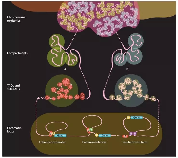 圖1 染色體不同層級(jí)三維構(gòu)象圖