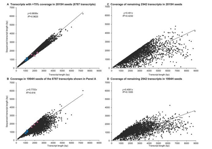 全長轉(zhuǎn)錄組:采用1994年和2015年收獲的種子胚胎軸(分別為1994H和2015H),分別5個生物學(xué)重復(fù);