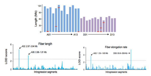 通過(guò)陸地棉(Gossypium hirsutum)和海島棉(Gossypium barbadense)兩種栽培棉種質(zhì)基因組的重新組裝,研究人員鑒定了大量的變異,這些變異應(yīng)與其它種質(zhì)的基因組分析相結(jié)合,以充分挖掘兩種種質(zhì)基因組間的差異。研究人員通過(guò)構(gòu)建滲入系,在兩種代表性種質(zhì)間探索研究了具有潛在優(yōu)質(zhì)纖維質(zhì)量性狀的基因組序列信息,而這在棉花育種中,可用于理想性狀的培育;這些資源將極大的促進(jìn)棉花功能基因組學(xué)與進(jìn)化基因組學(xué)的研究,并將為棉花纖維質(zhì)量的改良提供信息。