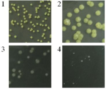 隨著鹽濃度的增高,菌落顏色由黃色變?yōu)榘咨?,且?%的NaCl鹽溶液中生長最佳,鹽濃度高于或低于該濃度,其生長速度均會(huì)下降。
