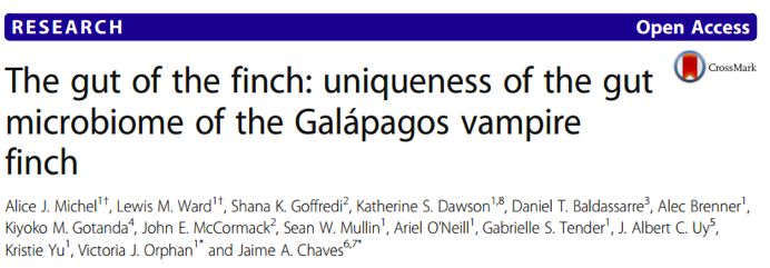 達(dá)爾文雀(Darwin’sfinches),原產(chǎn)于加拉帕戈斯群島的19種雀形目鳥類,由于生態(tài)地域隔離、特異喙結(jié)構(gòu)以及攝食習(xí)性(種子、蟲子及血液)差異,導(dǎo)致他們形成了“適應(yīng)輻射”(adaptive radiation)。盡管人們對這些標(biāo)志性鳥類進(jìn)行過調(diào)查,但它們的腸道菌群結(jié)構(gòu)及影響菌群結(jié)構(gòu)的因素尚未被探索。本文作者從達(dá)爾文雀的種類差異、生態(tài)地理位置以及攝食習(xí)性3方面進(jìn)行調(diào)查,研究成果于2018年發(fā)表在國際微生物TOP期刊Microbiome,該期刊的近五年影響因子為10.9分。