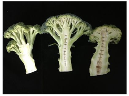 西蘭花是一種重要的蔬菜作物,其花頭富含維生素、礦物質(zhì)和葡聚糖苷等次生代謝產(chǎn)物,營(yíng)養(yǎng)價(jià)值高。但是在西蘭花的商業(yè)生產(chǎn)中經(jīng)常出現(xiàn)空心莖現(xiàn)象——靠近空腔的髓組織會(huì)被吹散甚至變黑。出現(xiàn)這種現(xiàn)象的花頭不受消費(fèi)者所喜愛,從而給生產(chǎn)者帶來(lái)了嚴(yán)重的經(jīng)濟(jì)損失。針對(duì)這種現(xiàn)象,作者利用西蘭花DH群體構(gòu)建了高質(zhì)量的遺傳圖譜,并在遺傳圖譜中鑒定出控制空心莖性狀的位點(diǎn),進(jìn)而找到有利基因應(yīng)用于育種中。