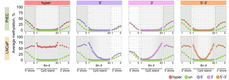 • 癌癥中,啟動(dòng)子區(qū)CpG島展現(xiàn)出不對稱的邊界甲基化;
