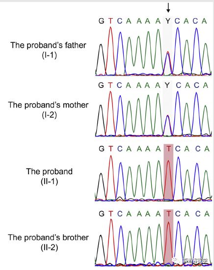 對兩兄弟及其父母進行了全外顯子組測序WES,平均覆蓋深度為120×,目標區(qū)域覆蓋度為99.87%。排除在任何變異數(shù)據(jù)庫中MAF>0.05的變異,錯義突變、無義突變、移碼突變和剪接位點突變等優(yōu)先保留。此外,SIFT、PolyPhen-2和Mutation Taster等同時預測為具有潛在有害性的變異也被保留用于進一步評估。