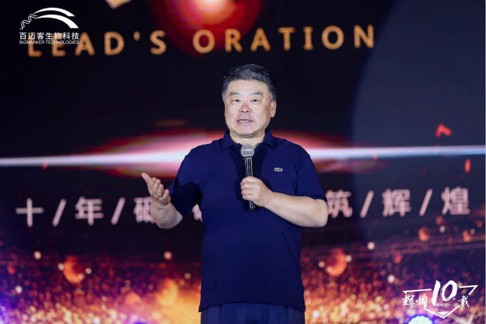 慶典活動開始,百邁客總裁鄭洪坤先生首先在致辭中對百邁客過去十年取得的成績進(jìn)行了回顧,特別感謝了各位專家、領(lǐng)導(dǎo)們對公司的支持與信任,也對全體百邁客人的付出表示鄭重的感謝,在未來發(fā)展展望中,鄭洪坤表示,公司將始終堅持既定的發(fā)展戰(zhàn)略目標(biāo),為創(chuàng)建中國生物產(chǎn)業(yè)標(biāo)志企業(yè)繼續(xù)奮斗!
