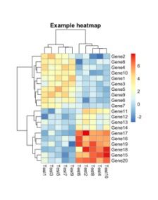pheatmap(test,?cellwidth?=?15,?cellheight?=?12,?main?=?"Example?heatmap")
