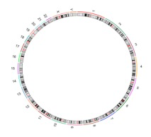 #?導(dǎo)入內(nèi)建人類染色體數(shù)據(jù) data(UCSC.HG19.Human.CytoBandIdeogram); #設(shè)置不顯示的染色體,如?c(1,3)??? chr.exclude?<-?NULL;? #設(shè)置染色體數(shù)據(jù) cyto.info?<-?UCSC.HG19.Human.CytoBandIdeogram;? #設(shè)置內(nèi)部環(huán)形個數(shù) tracks.inside?<-?10;? #設(shè)置外部環(huán)形個數(shù) tracks.outside?<-?0;? #?導(dǎo)入上面四個基本參數(shù) RCircos.Set.Core.Components(cyto.info,?chr.exclude,?tracks.inside,?tracks.outside); #?列出所有繪圖參數(shù) RCircos.List.Plot.Parameters() #?定義要生成的圖像文件 pdf(file="RCircosDemoHumanGenome",?height=8,?width=8,?compress=TRUE); RCircos.Set.Plot.Area(); #?height和width指定生成圖片的長和寬,compress指定生成的圖片是否需要壓縮 #?繪制染色體圖形 RCircos.Chromosome.Ideogram.Plot();