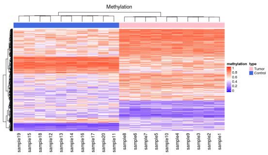>ht_list?=?Heatmap(mat_meth,?name?=?“methylation”,?col?=?meth_col_fun,