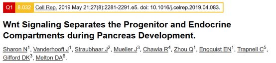 Wnt Signaling Separates the Progenitor and Endocrine Compartments during Pancreas?Development.Cell Rep,2019.