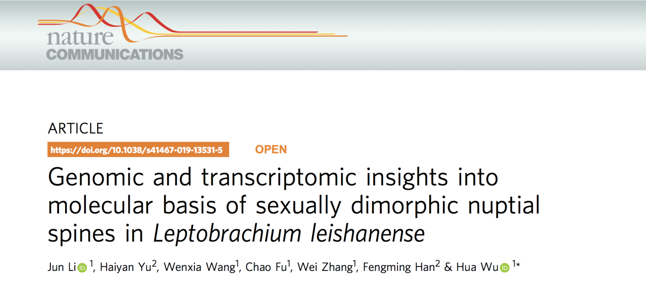 2019年12月5日,國(guó)際知名期刊Nature Communications (《自然·通訊》)在線發(fā)表了由華中師范大學(xué)與北京百邁客生物科技有限公司共同合作文章“Genomic and transcriptomic insights into molecular basis of sexually dimorphic nuptial spines in Leptobrachium leishanense”。華中師范大學(xué)生科院吳華教授為本文通訊作者,華中師范大學(xué)生科院李軍博士為論文的第一作者,百邁客生物科技作為第二單位共同參與研究。本研究借助二代、三代PacBio和HiC技術(shù)組裝了我國(guó)特有物種雷山髭蟾(Leptobrachium Leishanense)高質(zhì)量基因組,通過(guò)比較基因組學(xué)分析及雌雄個(gè)體不同發(fā)育時(shí)期的有參轉(zhuǎn)錄組分析鑒定了一系列與角質(zhì)刺性二態(tài)發(fā)育相關(guān)的生物學(xué)通路和關(guān)鍵基因。研究成果首次較全面地解析了兩棲動(dòng)物性二態(tài)形成相關(guān)的重要生物學(xué)通路以及關(guān)鍵基因,彌補(bǔ)了相關(guān)研究的不足。該成果不僅為兩棲動(dòng)物基因組數(shù)據(jù)庫(kù)提供了高質(zhì)量的參考基因組,而且對(duì)于深入理解脊椎動(dòng)物性二態(tài)形成及調(diào)控的分子機(jī)制具有重要意義。