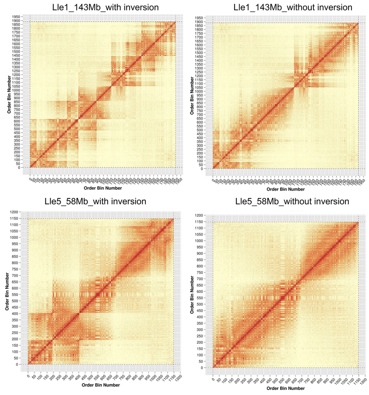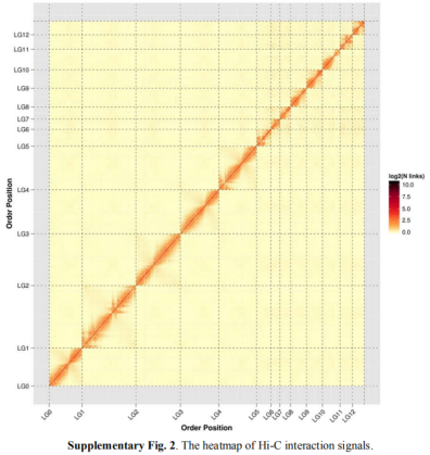 圖5 HiC互作信號(hào)鑒定雷山髭蟾染色體倒位