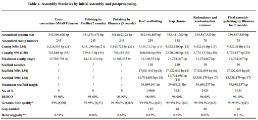1. 某多倍體植物組裝基本信息