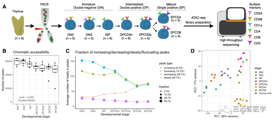 圖1通過ATAC-Seq染色質(zhì)可及性區(qū)分健康T細(xì)胞前體的成熟階段