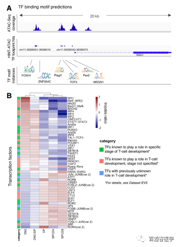 3、差異motif富集分析揭示調(diào)控T細(xì)胞發(fā)育的關(guān)鍵轉(zhuǎn)錄因子