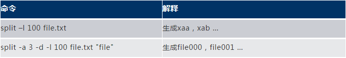 split命令可以按照行或者按照字節(jié)分割文件,以下列常用文本處理的寫法: