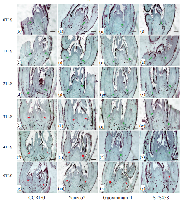 11個(gè)不同的組織:3日齡種子(種子)、2周齡整株苗(苗)、根、莖、2周齡苗的第一片全展葉(葉1),30日齡植株頂?shù)诙~(葉2)、旗葉(葉3)、第四葉(葉4)、未成熟的圓錐花序(圓錐花序1)、授粉期圓錐花序(圓錐花序2)、灌漿期圓錐花序(圓錐花序3);葉2有5個(gè)生物學(xué)重復(fù),其他有3個(gè)生物學(xué)重復(fù)。