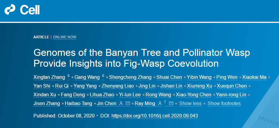 2020年10月8日,福建農(nóng)林大學基因組與生物技術(shù)中心聯(lián)合中國科學院西雙版納熱帶植物園等多個單位共同合作的榕-蜂協(xié)同進化研究成果以“Genomes of the banyan tree and pollinator wasp provide insights into fig-wasp coevolution”為題在國際期刊Cell上在線發(fā)表。文中利用北京百邁客生物科技有限公司的Hi-C建庫測序技術(shù),并結(jié)合明瑞光課題組獨立研發(fā)的ALLHiC算法成功的將小葉榕和對葉榕組裝至染色體水平,并對榕樹氣生根、性別決定基因、榕樹進化以及榕蜂共生體系專性協(xié)同進化等進行研究。該研究為明瑞光教授團隊繼18、19年連續(xù)兩年論文刊登期刊Nature Genetics[1-2]后的又一次突破性成果!