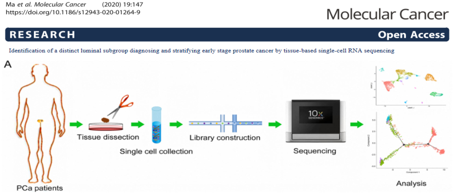 英文題目:Identification of a distinct luminal subgroup diagnosing and stratifying early stage prostate cancer by tissue-based single-cell RNA sequencing