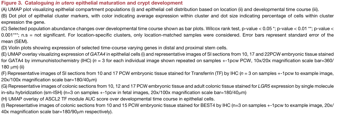 最后,研究人員證實S2標記F3在隱窩形成之前就已經存在,并且形成的小丘隨著絨毛的形成而逐漸增加(Figure 5 F)。因此,在人腸道中,S2型纖維母細胞不僅是維持上皮隱窩位所必需的,而且可能在其形成中發(fā)揮積極作用。