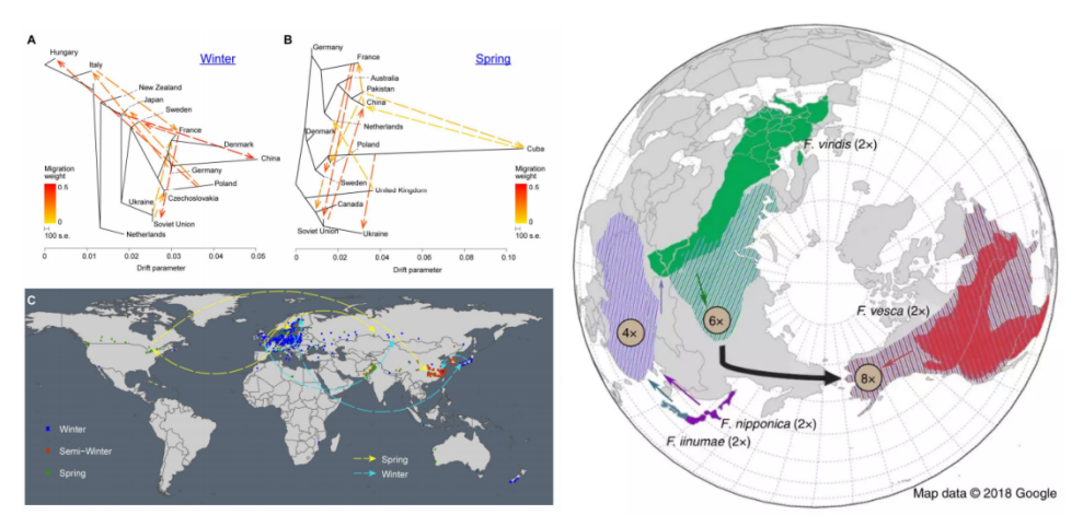 除了祖先來(lái)源的探索,物種的進(jìn)化與傳播歷程也是每一個(gè)種質(zhì)資源研究者的重點(diǎn)關(guān)注對(duì)象。