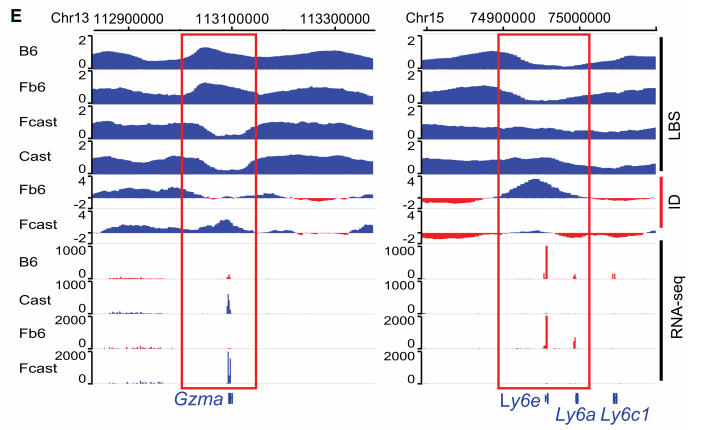 早期研究先前的研究廣泛地研究了平均染色質(zhì)結(jié)構(gòu),一直忽視了同源染色體間的表觀調(diào)控差異。近期研究表明,同源染色體間的三維結(jié)構(gòu)同樣具有差異。例如靳文菲課題組通過(guò)多組學(xué)技術(shù)研究雜交小鼠揭示同源染色體間的相互作用模式、三維結(jié)構(gòu)、染色質(zhì)動(dòng)態(tài)、組蛋白修飾及其對(duì)基因表達(dá)的影響。