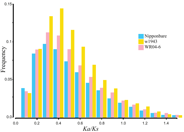 ?雜草稻基因?qū)a/Ks值的頻率分布