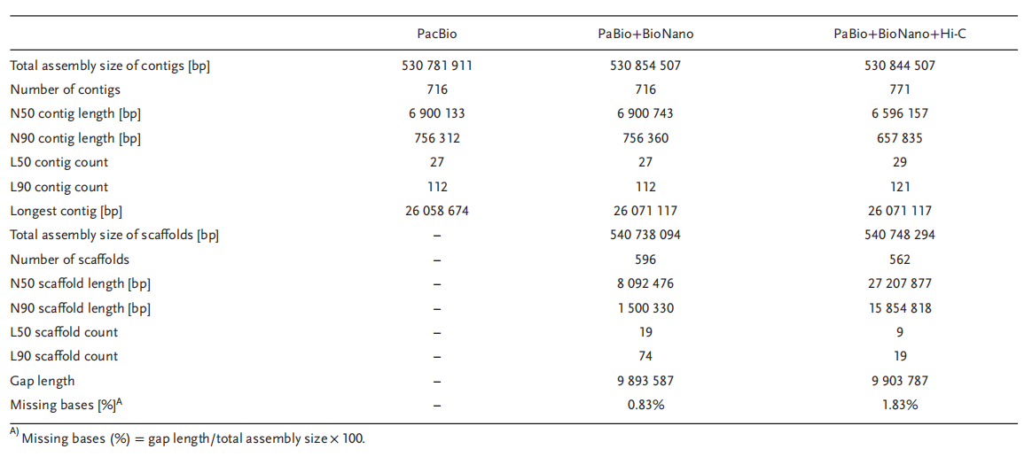 1. 材料:C.×hytivus自交第14代(S14);測序:~69X PacBio+~104X Hi-C+Bionano;轉(zhuǎn)錄組輔助基因預(yù)測:Illumina RNA-Seq 及 PacBio Iso-Seq