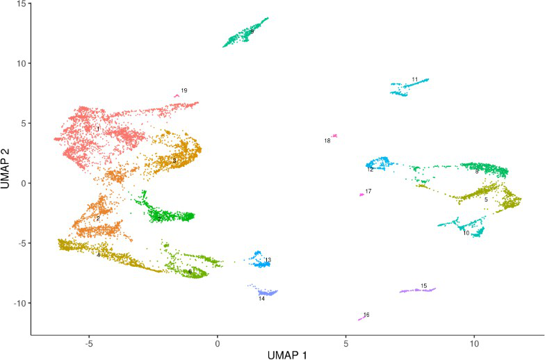 我們使用monocle3對(duì)數(shù)據(jù)進(jìn)行聚類分析。