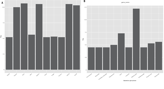 通過與基因頻率配對確定的前10個屬為:Bordetella, Lutispora, Methylocystis,Ohtaekwangia,Roseomonas,Shewanella,GpVI,Desulfovibrio,Candidatus_Berkiella and Azorhizobium。其中,Methylocystis數量最多,在甲烷循環(huán)中起作用。