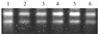 實(shí)驗(yàn)數(shù)據(jù):RNA提取凝膠電泳圖