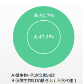 小編先在PubMed網(wǎng)站搜索了一下微生物組和代謝在2011-2020年的發(fā)文情況。以微生物組和代謝組為關(guān)鍵詞搜索文獻數(shù)量信息。從數(shù)據(jù)中我們可以看到,微生物和代謝相關(guān)文章在逐年增加,47.3%的微生物發(fā)表文獻中都包含代謝組,微生物組+代謝組研究已逐漸成為微生物研究中的重要多組學(xué)研究思路。