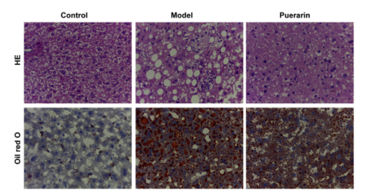 葛根素組喂食MCD 飲食并與葛根素同時灌胃給藥(0.2 g/kg,懸浮在 0.5% 羧甲基纖維素鈉中)每天一次,持續(xù) 4 周,