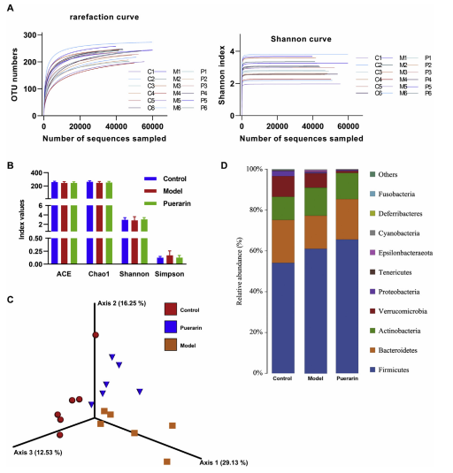廣州中醫(yī)藥大學藥學院、 廣東藥科大學中醫(yī)學院、中山大學附屬第六醫(yī)院聯(lián)合在Journal of Pharmaceutical and Biomedical Analysis雜志發(fā)表以“Therapeutic potential of puerarin against methionine-choline-defificient diet-induced non-alcoholic steatohepatitis determined by combination of 1H NMR spectroscopy-based metabonomics and 16S rRNA gene sequencing”為題的文章,揭示葛根素對非酒精性脂肪性肝炎的治療方向的相關研發(fā)現(xiàn),從而為非酒精性脂肪性肝病的治療提出新的見解理論基礎。其中微生物多樣性檢測由百邁客協(xié)助完成。