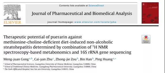 Gong MJ, Zhu CY, Zou ZJ, et al. Therapeutic potential of puerarin against methionine-choline-deficient diet-induced non-alcoholic steatohepatitis determined by combination of 1H NMR spectroscopy-based metabonomics and 16S rRNA gene sequencing. J Pharm Biomed Anal. 2021 Apr 15;197:113964. doi: 10.1016/j.jpba.2021.113964.