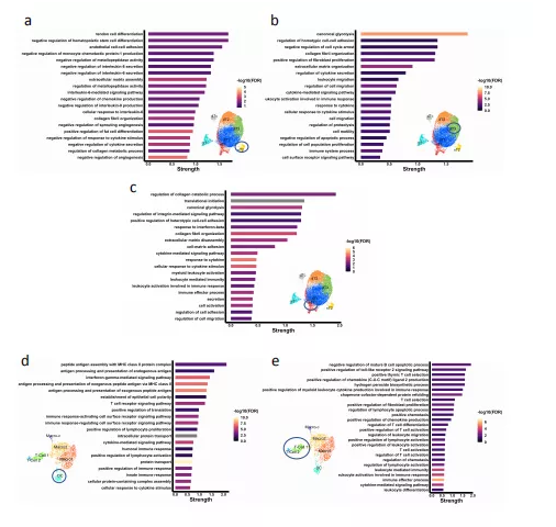 從細(xì)胞間相互作用分析產(chǎn)生ST指示性數(shù)據(jù)表明基質(zhì)誘導(dǎo)免疫調(diào)節(jié)。因此假設(shè)肌腱內(nèi)免疫區(qū)室的主要作用是調(diào)節(jié)和解決損傷;然而隨著微創(chuàng)傷的累積,肌腱細(xì)胞發(fā)起的碎片去除和基質(zhì)修復(fù)的基本過(guò)程可能導(dǎo)致免疫區(qū)室陽(yáng)性擴(kuò)增。進(jìn)一步提出,在患者肌腱內(nèi),免疫穩(wěn)態(tài)可能變得不平衡,激活的免疫細(xì)胞由內(nèi)皮細(xì)胞和基質(zhì)細(xì)胞引發(fā),促進(jìn)炎癥循環(huán)和異常組織修復(fù)。炎癥環(huán)境,包括在這個(gè)初步肌腱圖譜中明確證明的細(xì)胞因子通路,在一系列炎癥性RMDs中產(chǎn)生有效的免疫干預(yù)。最值得關(guān)注的是在人類(lèi)肌腱疾病中定位和研究這些通路的潛力。
