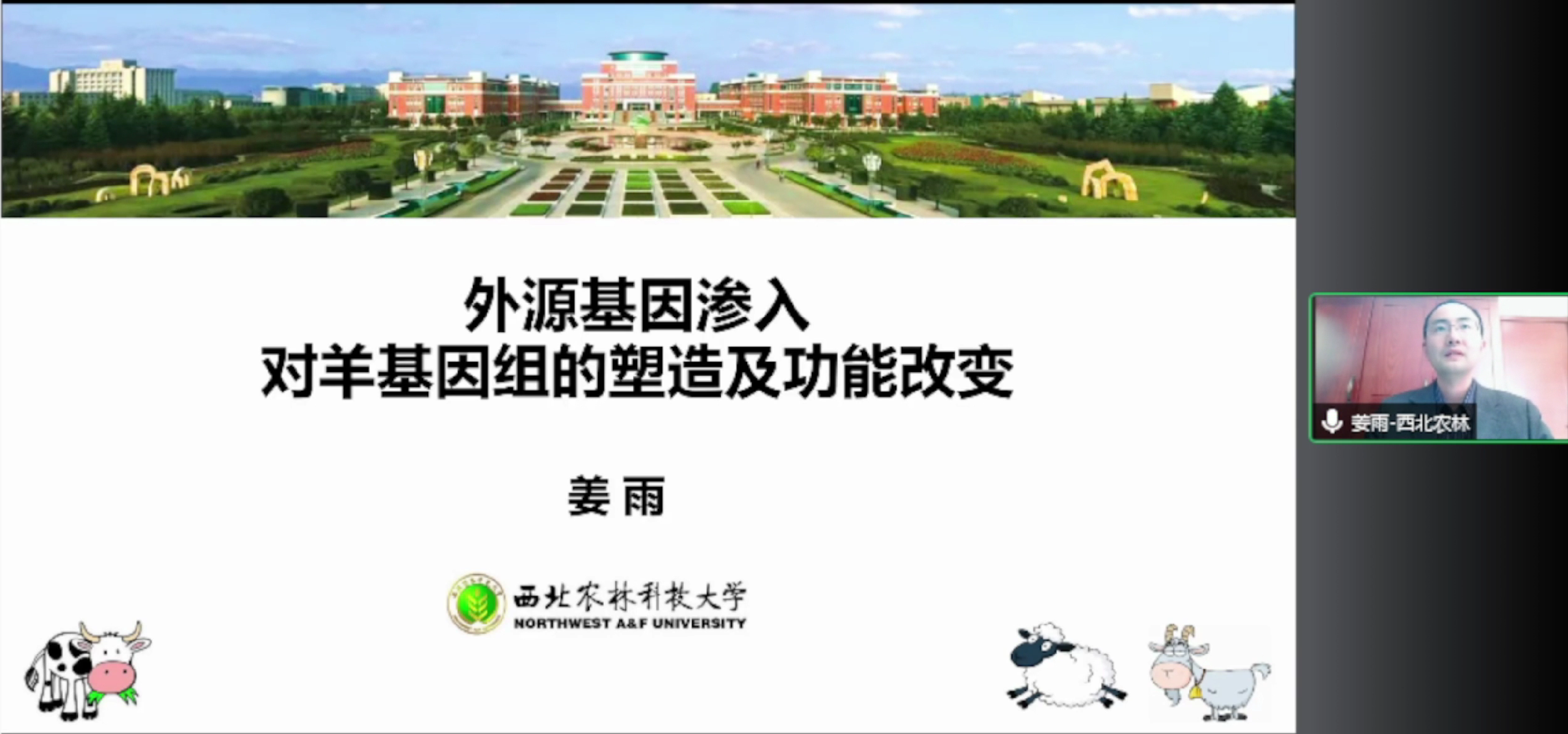 西北農(nóng)林科技大學(xué)姜雨教授報(bào)告詳述了基因滲入對(duì)羊基因組的塑造及其功能改變,其研究團(tuán)隊(duì)通過(guò)代表了170多個(gè)世界綿羊品種和七個(gè)綿羊?qū)僖吧锓N的全基因組序列分析,發(fā)現(xiàn)平均每只家養(yǎng)綿羊的基因組序列分別來(lái)自于伊朗的野生摩佛倫羊、東方盤羊和東亞盤羊的雜交滲入。說(shuō)明起源于野生物種并滲入家養(yǎng)綿羊的獨(dú)特單倍型在表型多樣性和綿羊本地化適應(yīng)中起著重要作用。并發(fā)現(xiàn)綿羊的大角、小角、無(wú)角以及耳朵大小性狀相關(guān)基因。最后表示,從多個(gè)近緣野生物種、馴化祖先種的不同群體之間發(fā)生的滲入事件持續(xù)發(fā)生,遠(yuǎn)比想象的復(fù)雜,需要結(jié)合歷史和地理的遷徙知識(shí)討論。滲入單倍型在多種功能上發(fā)揮作用,其與已存在變異、新發(fā)突變通過(guò)快速組合,適應(yīng)新的環(huán)境。
