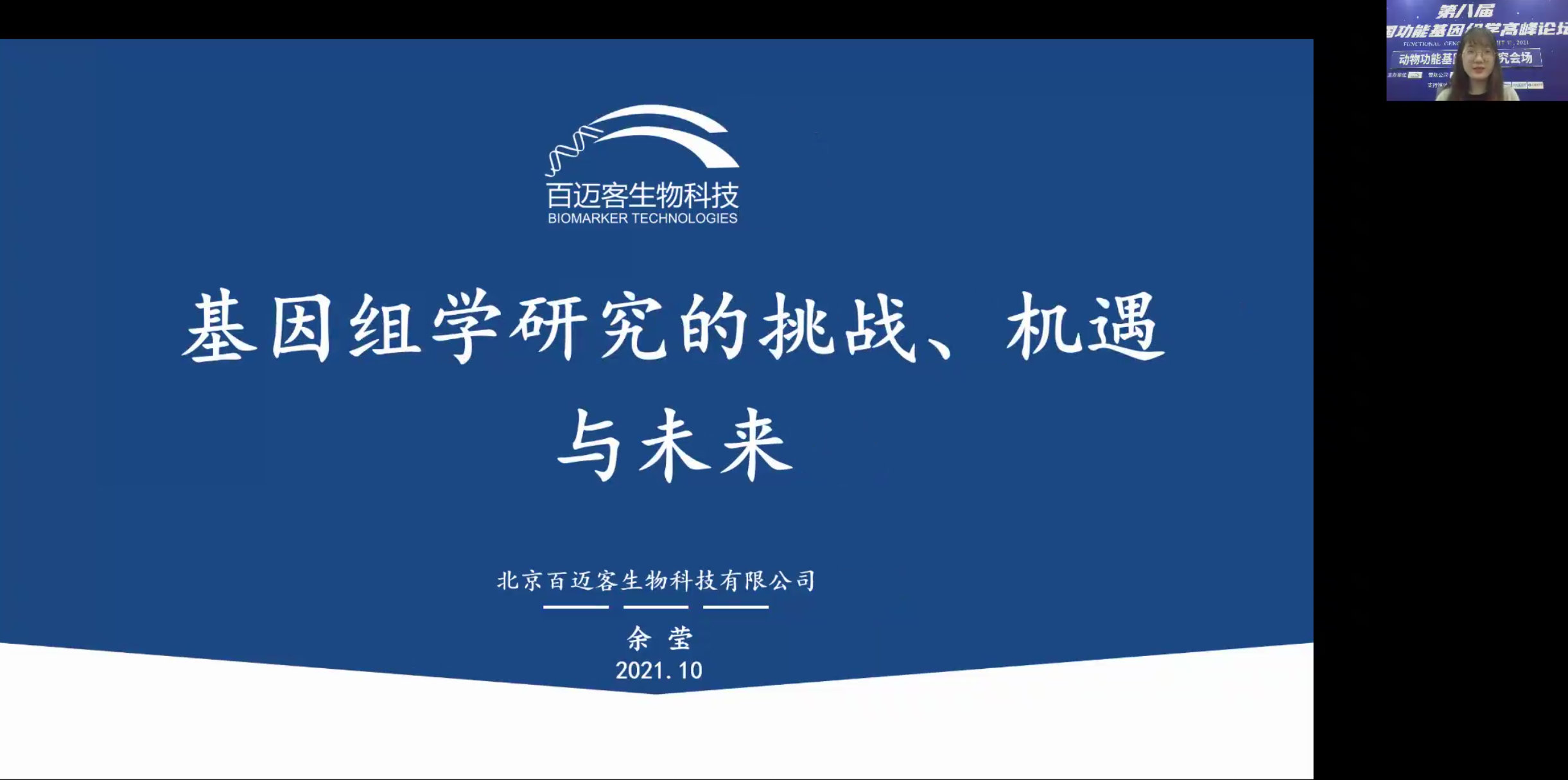 2021年10月18日,由北京百邁客生物科技有限公司主辦的“第八屆全國(guó)功能基因組學(xué)高峰論壇-動(dòng)物分會(huì)場(chǎng)”線上直播會(huì)議完美落幕。