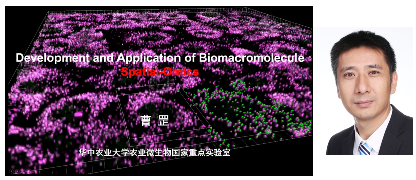 聆聽完湯老師的報(bào)告是不是意猶未盡,接下來(lái)第二位出場(chǎng)報(bào)告嘉賓是華中農(nóng)業(yè)大學(xué)楚天學(xué)者特聘教授,曹罡教授,曹老師的報(bào)告題目是:Development and Application of Single cell Biomacromolecule Spatail-Omics。。曹老師團(tuán)隊(duì)開發(fā)了一系列的單細(xì)胞生物大分子原位組學(xué)檢測(cè)新技術(shù),包括(單細(xì)胞)三維基因組學(xué)、單細(xì)胞原位測(cè)序技術(shù)、新型中低通量單分子FISH技術(shù)、蛋白互作網(wǎng)絡(luò)及其高通量空間定位技術(shù)和結(jié)合神經(jīng)環(huán)路的單細(xì)胞測(cè)序技術(shù)。同時(shí),并將這些技術(shù)運(yùn)用到神經(jīng)免疫學(xué)與病原感染、腫瘤等疾病的發(fā)生發(fā)展及其檢測(cè)研究中,極大的拓展了單細(xì)胞生物大分子空間組學(xué)的發(fā)展與應(yīng)用。