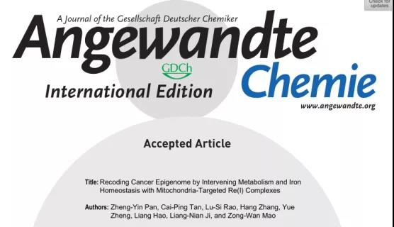英文題目:Recoding Cancer Epigenome by Intervening Metabolism and Iron Homeostasis with Mitochondria-Targeted Re(I) Complexes